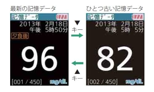 ひとつ古い記憶データを表示するには、▼キーを押します。