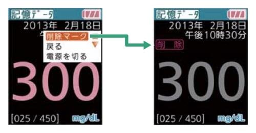 参考「選択モード」「多機能モード」で測定値に削除マークを付ける方法は取扱説明書67ページをご確認ください。