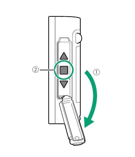 操作ボタンを使うため、右側面のボタンカバーを開けます。