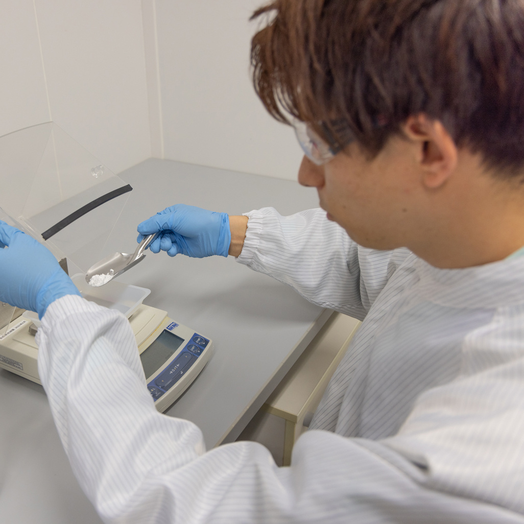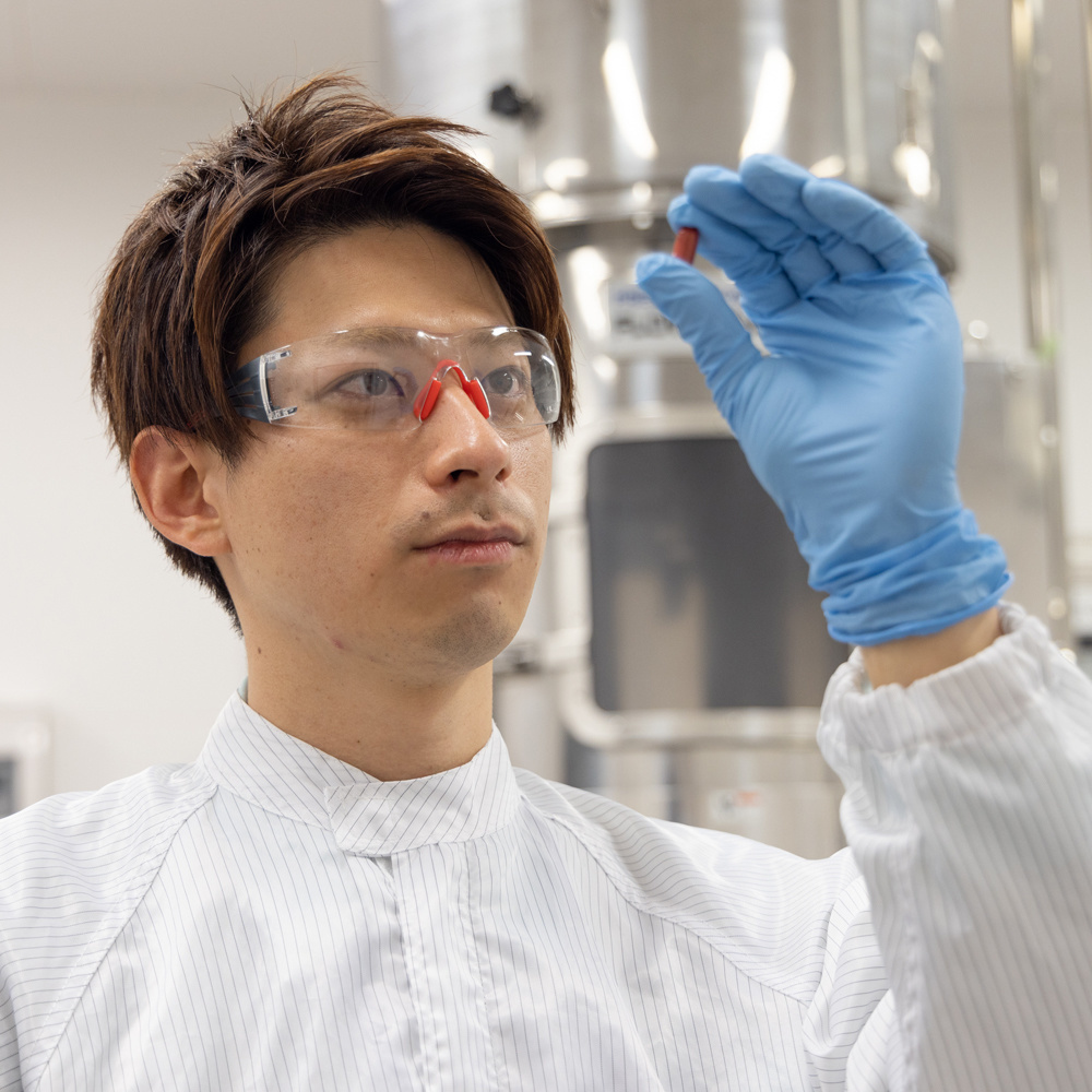 先輩の指導のおかげで多くのことを学んでいます。三和化学研究所の研究者は、若手であっても幅広い仕事をさせてもらえます。また、一人ひとりの意見を大事に聞いてくれる方が多く、自分のやりたいことにチャレンジすることができる会社です。チームワークが強いのも特色です。皆で一致団結して明確な課題に対して取り組み、困難な状況でも短期間で課題を解決できた時は大きなやりがいを感じます。私が所属するCMC研究所では、医薬品候補化合物を最適な状態で患者さんが服用できるように製剤の処方や製造工程の構築を行っています。昨年、私が携わった注射剤の新薬が上市された時は本当に嬉しかったです。今は、新しいくすりを開発するプロジェクトのメンバーとして、新たなチャレンジをしています。